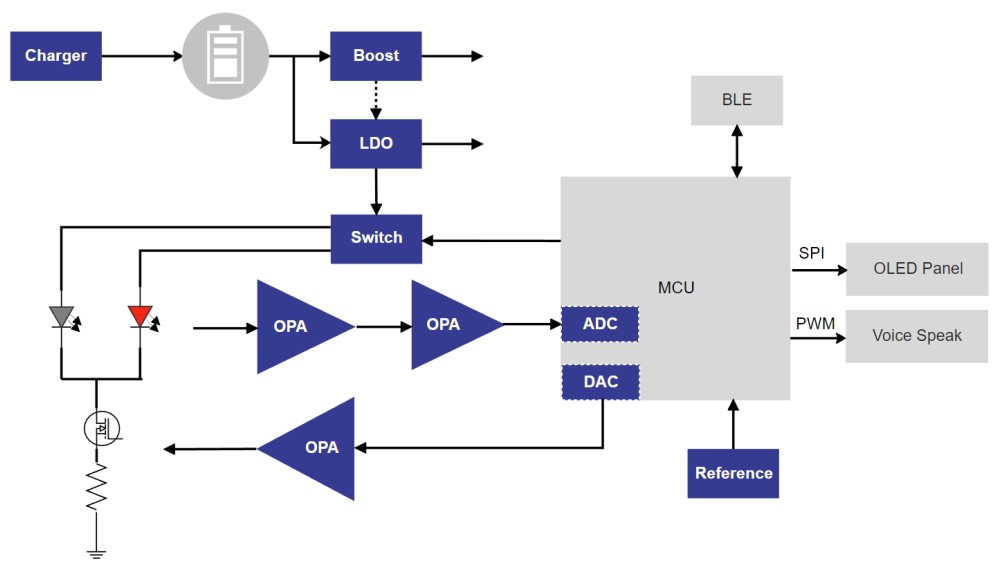 血氧儀應用方案框圖: